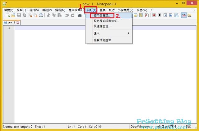 Step 1:Notepad++內建有自動完成功能及自動補齊功能,這兩個功能在我們寫網頁或程式時會十分方便,但這兩個功能在預設中是關閉,以下教學是指引使用者如何開啟這兩個功能。點選『自訂』,在『自訂』項目裡點選『使用者自訂...』,開啟『使用者自訂』視窗好,點選『字詞自動完成功能』項目,在『自動完成功能』裡勾選『啟動自動完成功能』,參數及字詞的差異是:『參數』是Notepad++ 內建的詞庫選擇可能的詞,詞庫裡的詞會受到你目前編輯的程式語言有關;『字詞』就是由目前編輯的文件出現過的字詞中的詞中選擇,假如是要編寫程式,一般都是選擇『參數』為主,『自動顯示功能參數提示』就是你在輸入函式的時候,會提醒你函式有哪些參數,這功能在寫程式的時候十分有用。『自動補齊』功能是最近新版的Notepad++整合進去的,舊版本都是需要另外安裝外掛,才會有『自動補齊』功能,『自動補齊』要依使用者編寫什麼程式語言去勾選,編寫網頁,一般都會勾選『html/xml 結束標記』,勾選完畢之後,點擊『關閉』。