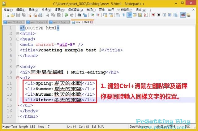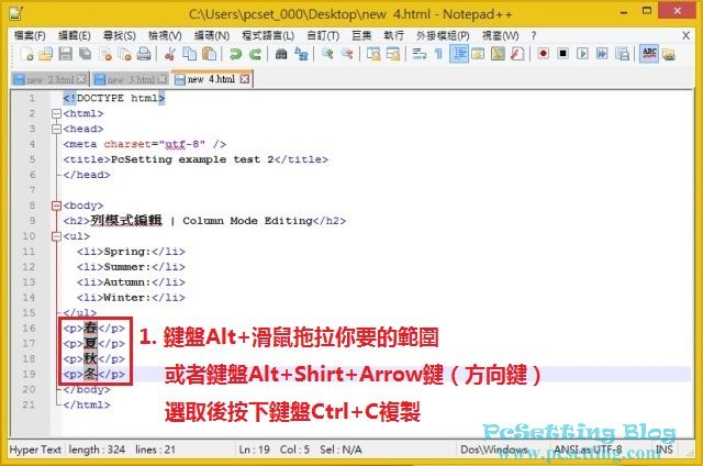 6)Notepad++的特異功能--『列模式編輯』與『同步異位編輯』教學。