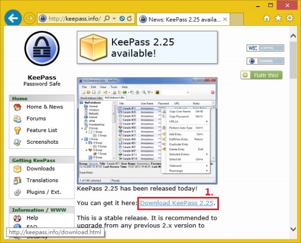 Step 1:連結至KeePass Password Safe的官方網站,點選最新版本的KeePass工具下載。