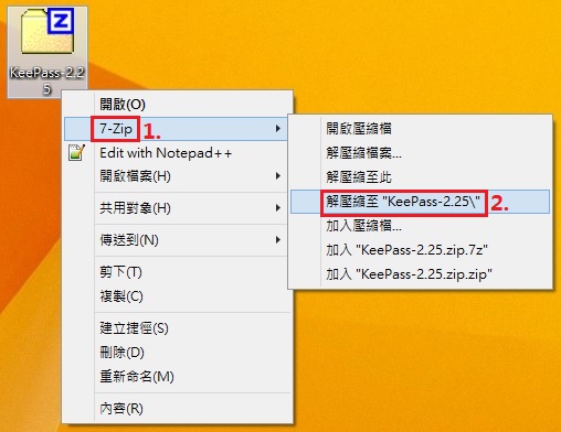 Step 5:解壓縮完成之後,滑鼠左鍵點擊兩下『KeePass』應用程式開啟KeePass密碼管理器。