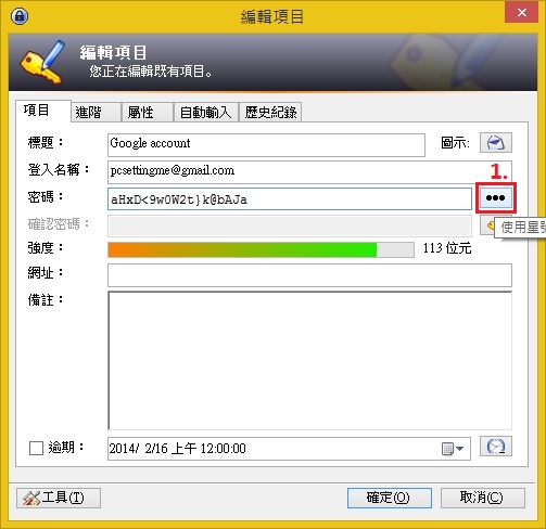 Step 11:可以在如下圖所示的地方點擊,就可以看到『密碼產生器』幫你產生的密碼。